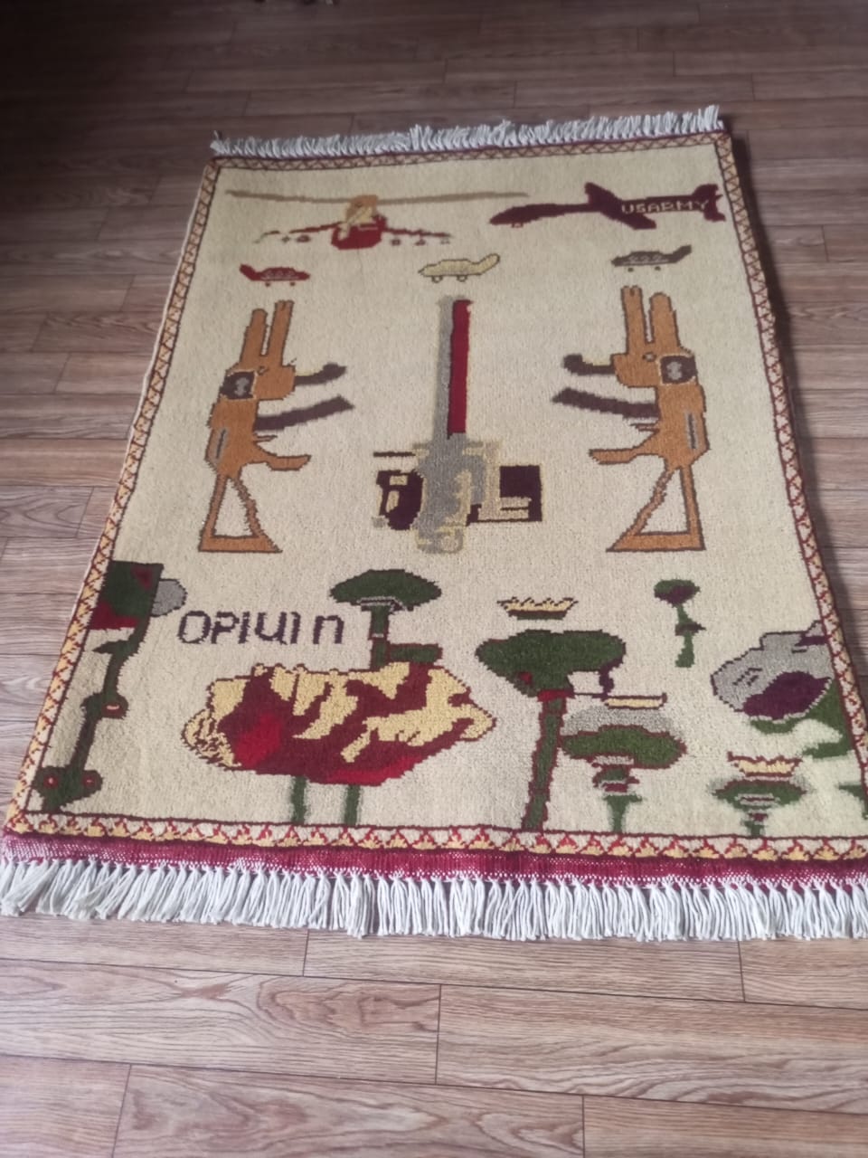 no 53 Hand Made Afghanistan rug ak 47, afghan war rugs, Size 60 cm x 80